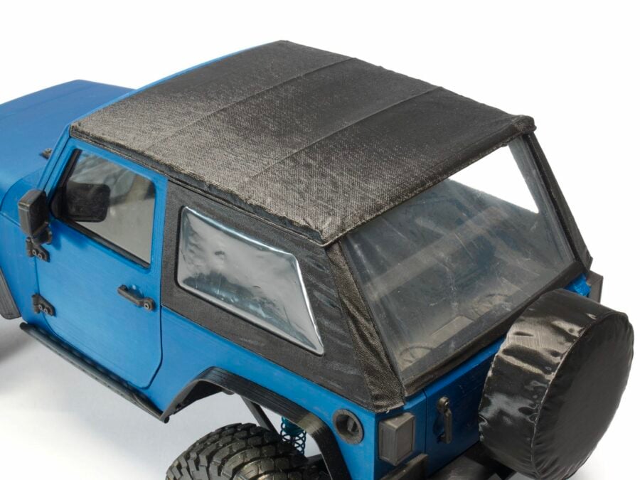 What do the HD Surface Details mean? We developed a technology, which allows us to apply very fine surface finishes on CAD-generated parts, and it’s printable on all FDM printers. We utilized this to make a nice Soft Top roof and Spare Wheel Cover, using very fine “fabric” texture or “cloth folds”. You will see excellent results on these parts, which will entice you to touch the surface!