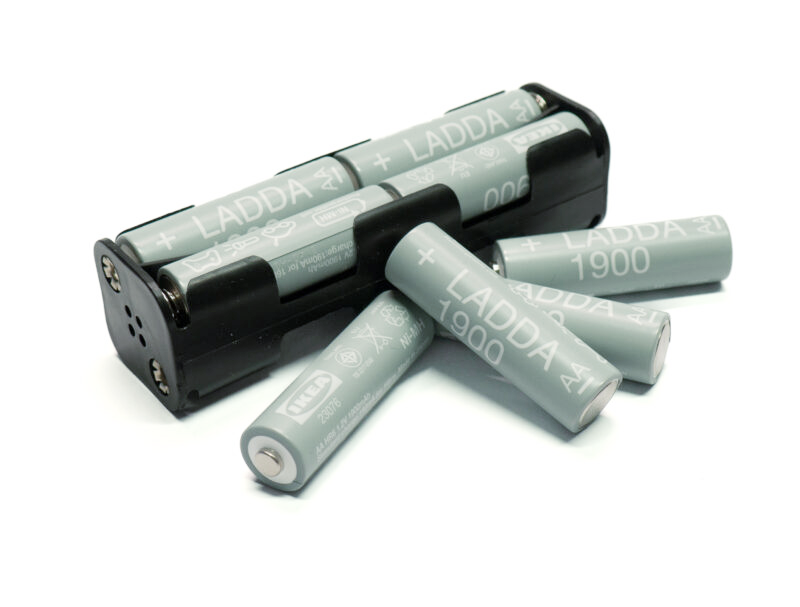 Print your own tires or use cheap LEGO tires, IKEA AA cells, cheap motors.