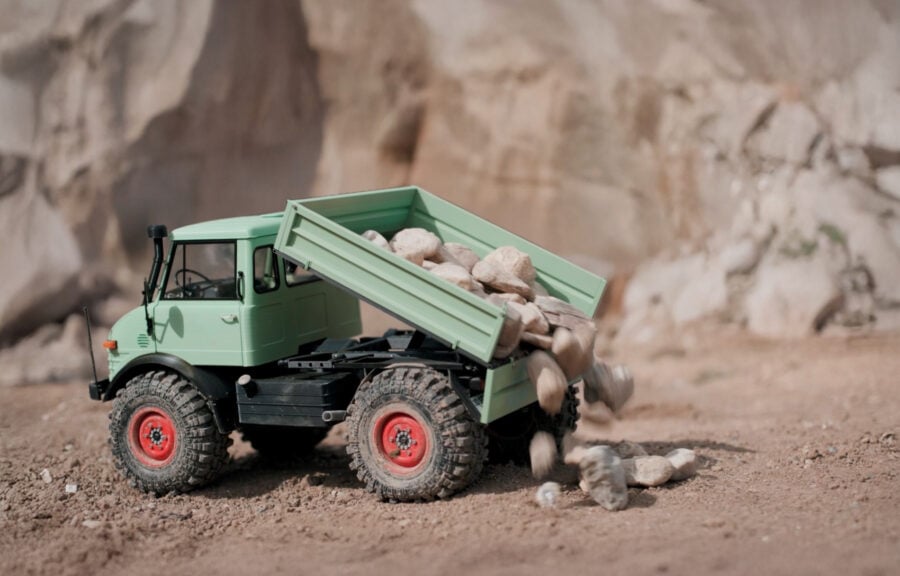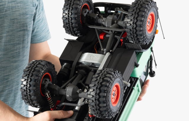 Mogster 4×4 Tipper is a true 1:8 scale RC truck, built to conquer the toughest terrain. It features all-new portal axles for extreme ground clearance, a robust body-on-frame chassis faithful to the real machine, and a functional 3-way tipper bed that makes it as practical as it is powerful. With its high gear reduction from the transfer case and portal gears, Mogster delivers immense torque and unstoppable crawling ability.