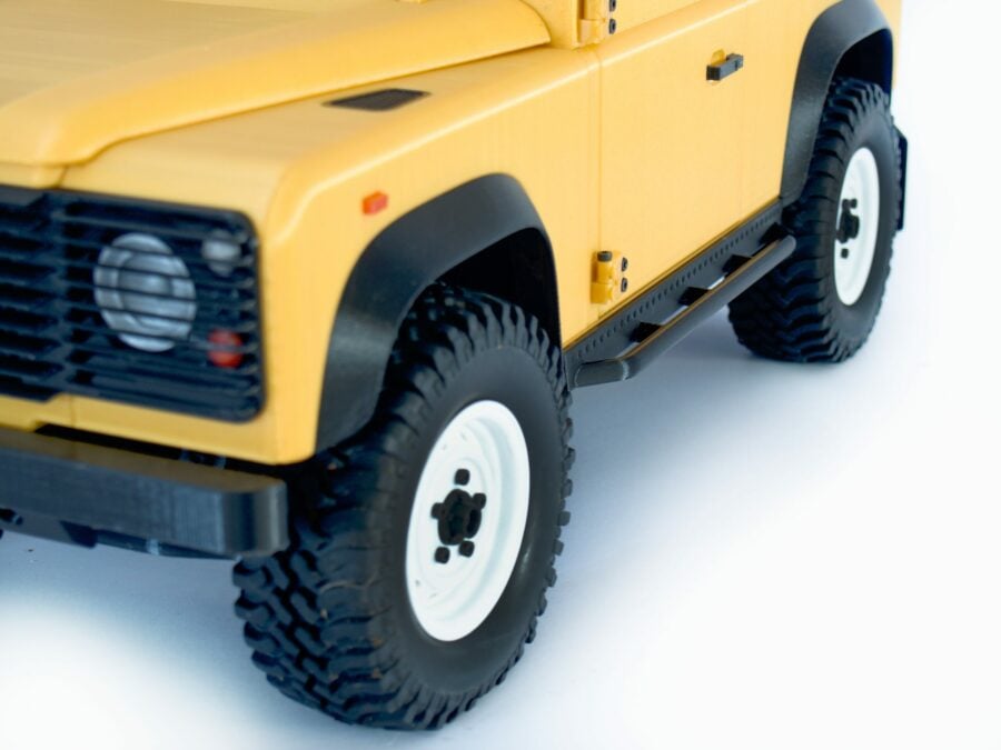 Set of Rock Sliders will bring more off-road look to your Model 3: Landy 4×4 Pickup or Model 4: Landy 4×4 Hardtop. Just flip the Landy upside down and you will find a set of holes ready to mount these new parts.