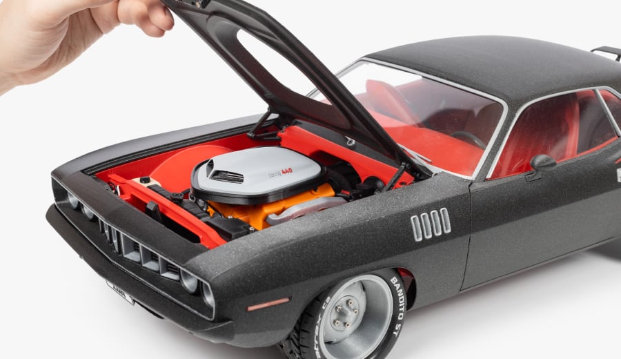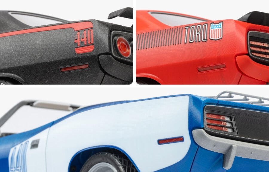 The rebel muscle car — now available as a convertible — delivers power and performance straight from the garage of an American classic. This model offers a revolution in 3D printing: magnetic drivetrain protection, multi-material ready, magnetic shock absorbers, upgraded gearbox for a smooth ride, reinforced cardans and open differential add precise control and stability to your car.
