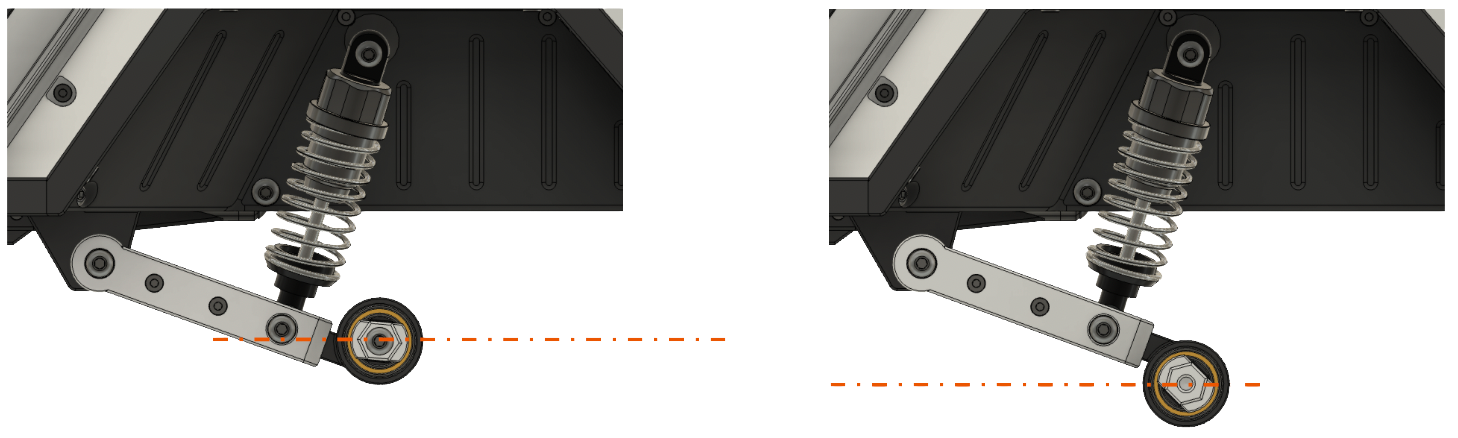 Choice of two chassis heights without changing the shock absorbers – just flip the suspension arms upside down! Stiff suspension for high lateral stability.