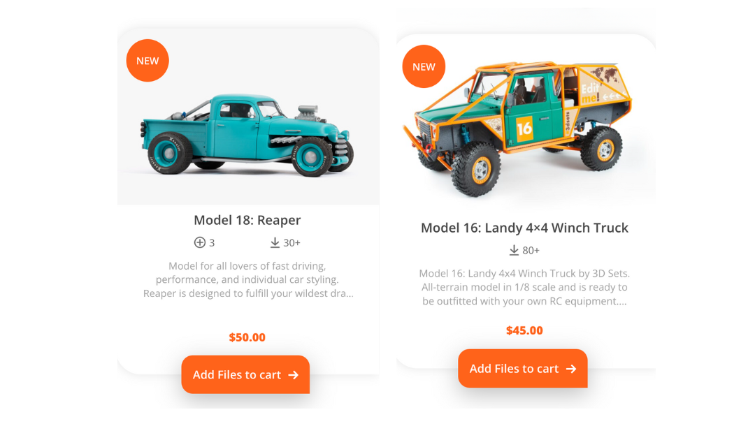 You choose Model 18: Reaper for $50 and Model 16: Landy 4×4 Winch Truck for $45.Â